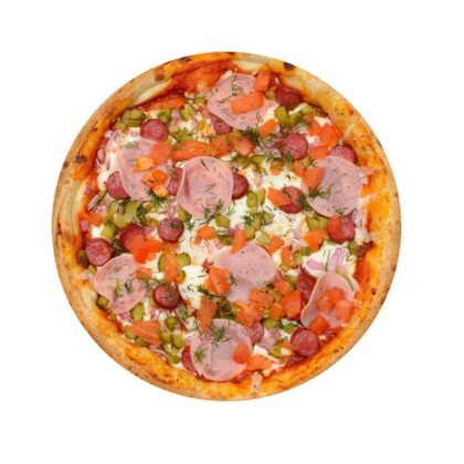 Сыр Моцарелла, филе курицы гриль, бекон, помидоры, соус "Ранч".