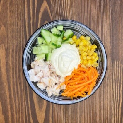 Салат с копченой куриной грудкой, корейской морковкой