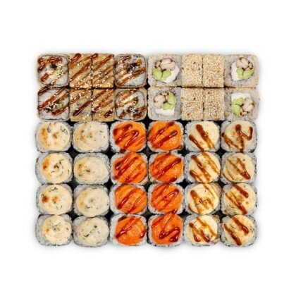 -Запеченный с крабом (нори, рис, огурец, крем-краб, омлет томаго, соус сырный, соус унаги),
