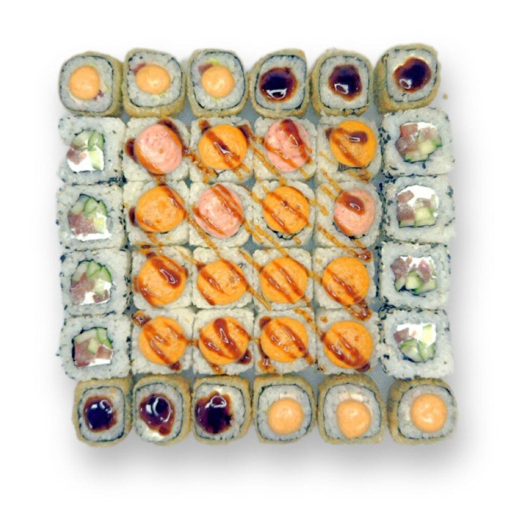 - Изумитай (рис, нори, сыр, огурцы, окунь, соус яки, соус, спайси, соус унаги).